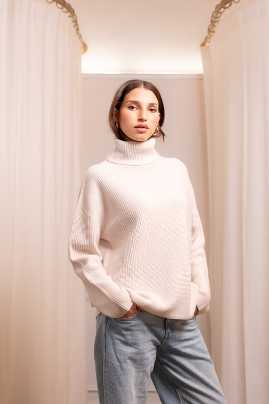 Maglione Collo Alto Punto Pannocchia in Lana Vergine 100%