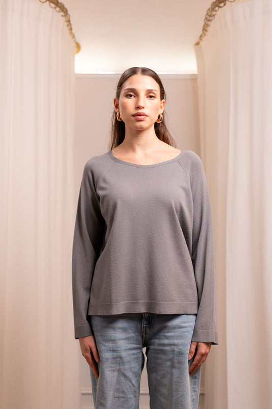 Maglia Grigia in Viscosa Elasticizzata - Capo Essenziale Made in Italy