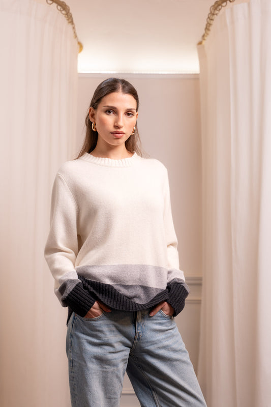 Girocollo Tricolore Grigio Lana Cashmere - Taglio Boxy Made in Biella