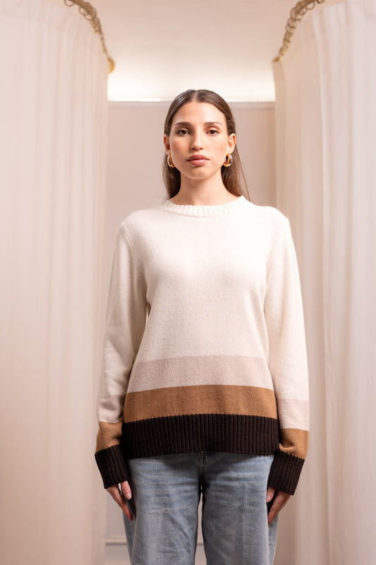 Girocollo Tricolore Marrone Lana Cashmere - Taglio Boxy Made in Biella