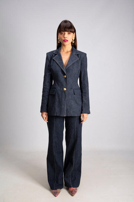 Giacca Tailleur Jeans Avvitata - Bottoni Oro Impunture Made in Italy