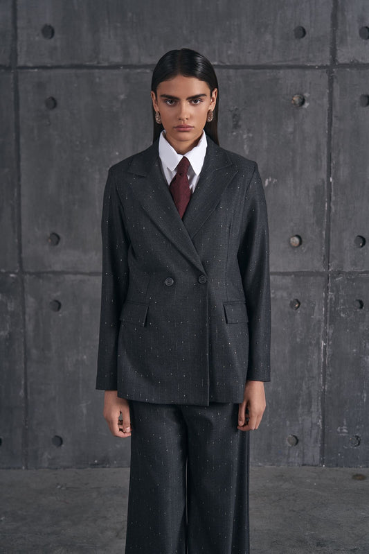 Giacca Gessata Tailleur Nera - Avvitata Spallina Imbottita Made in Italy
