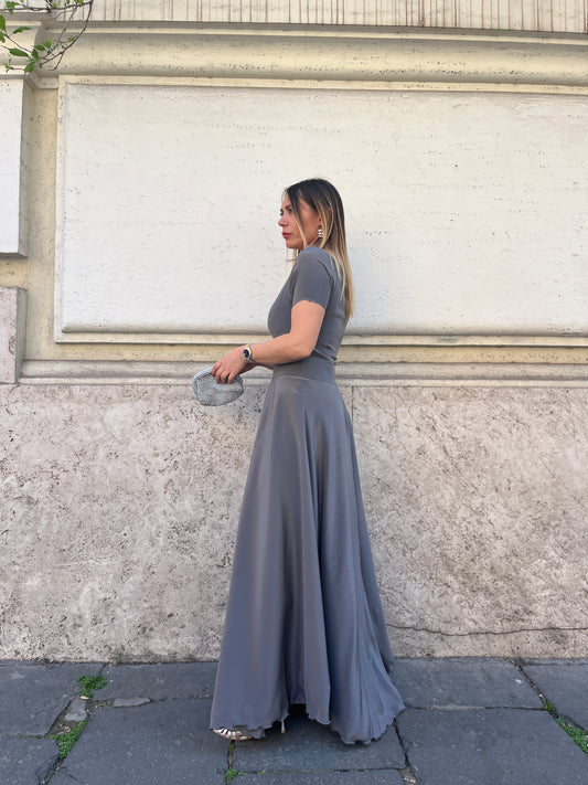 Gonna Lunga A Ruota In Seta Argento