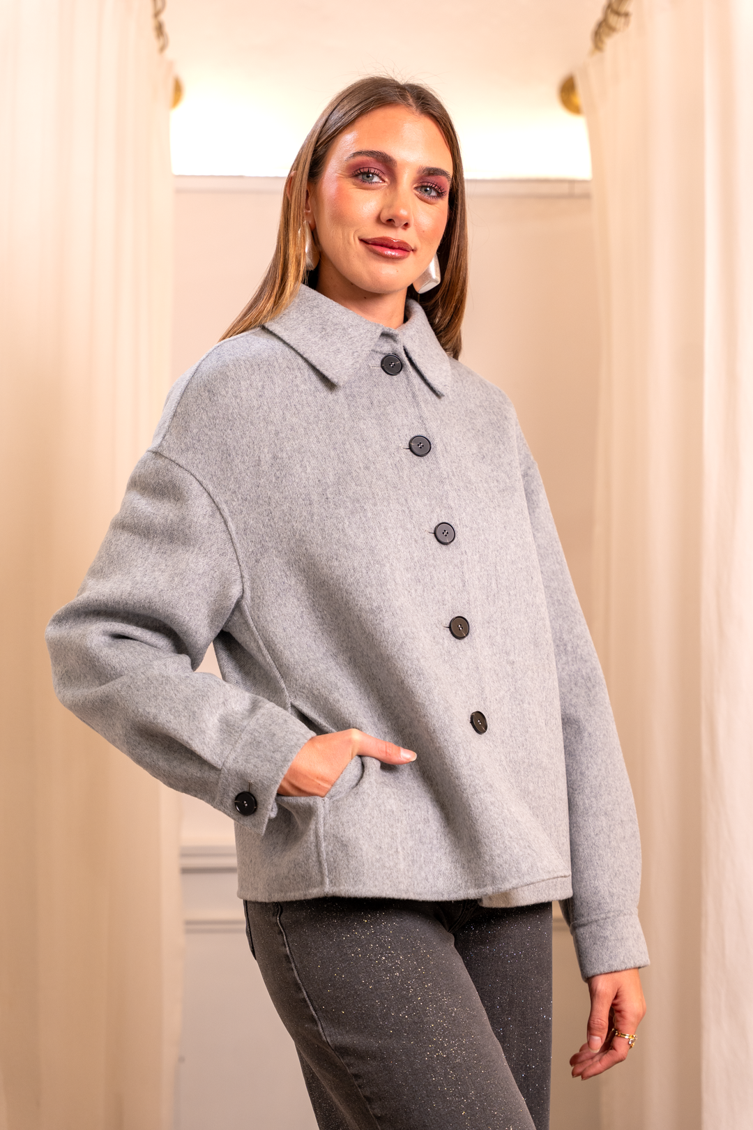 Double-Breasted Virgin Wool Coat in Pearl Grey - Unlined Drap Made in Italy