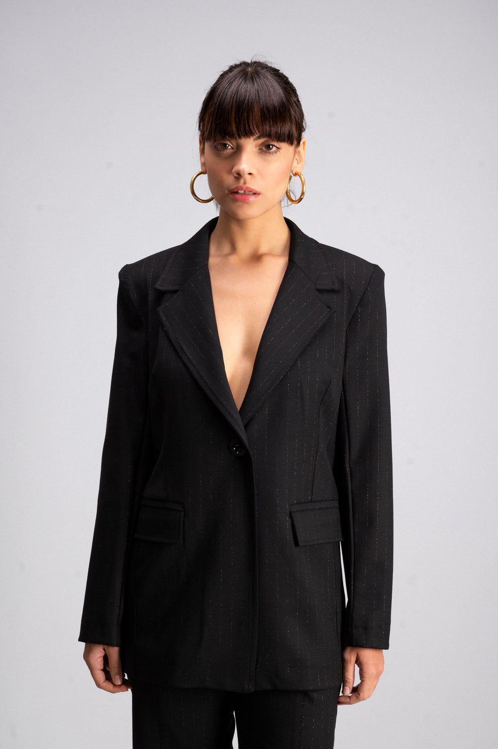 Black Pinstripe Tailored Jacket - Fitted with Padded Shoulder Pads Made in Italy