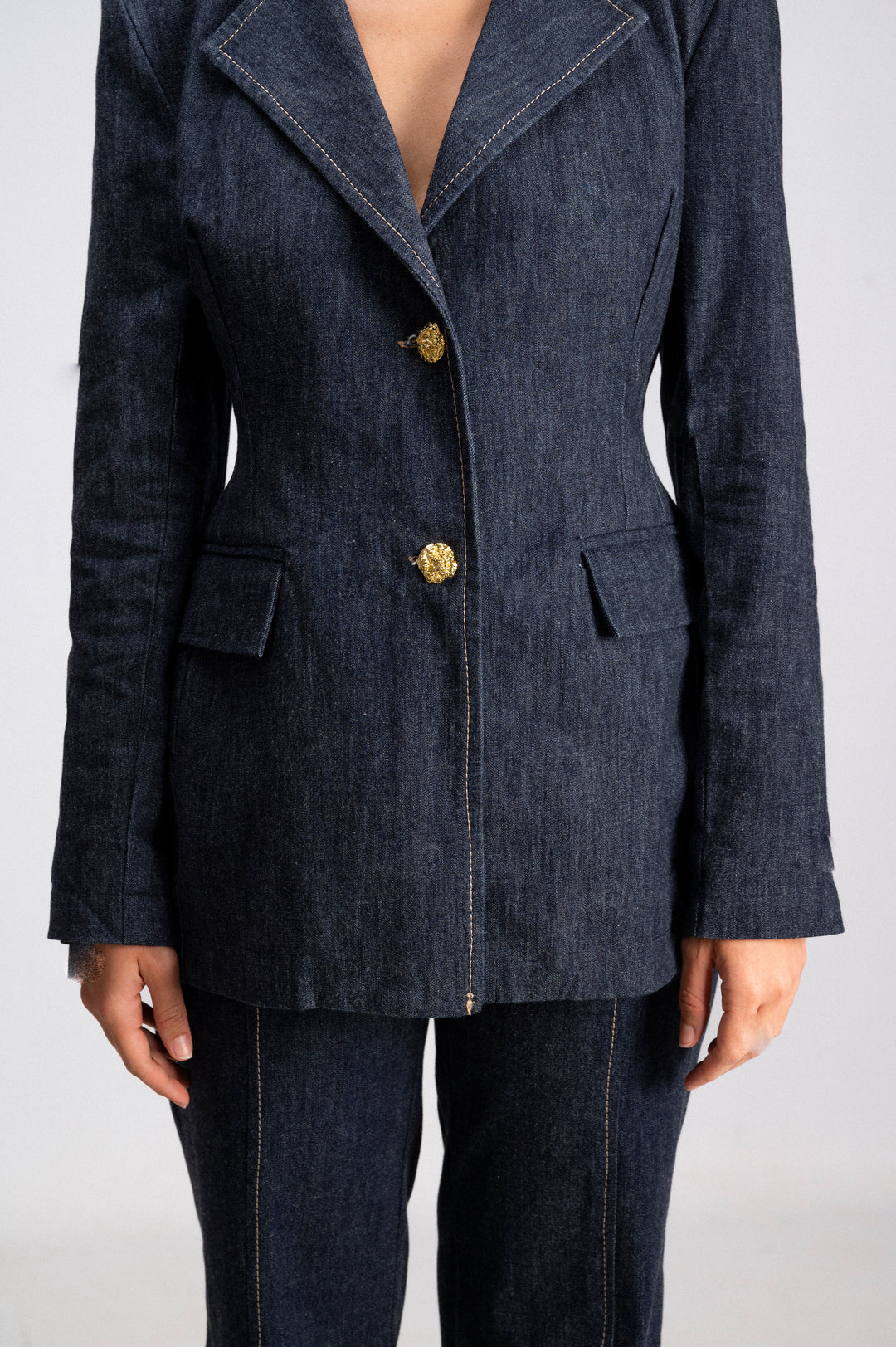 Slim-Fit Denim Suit Jacket - Gold Buttons and Stitching Made in Italy