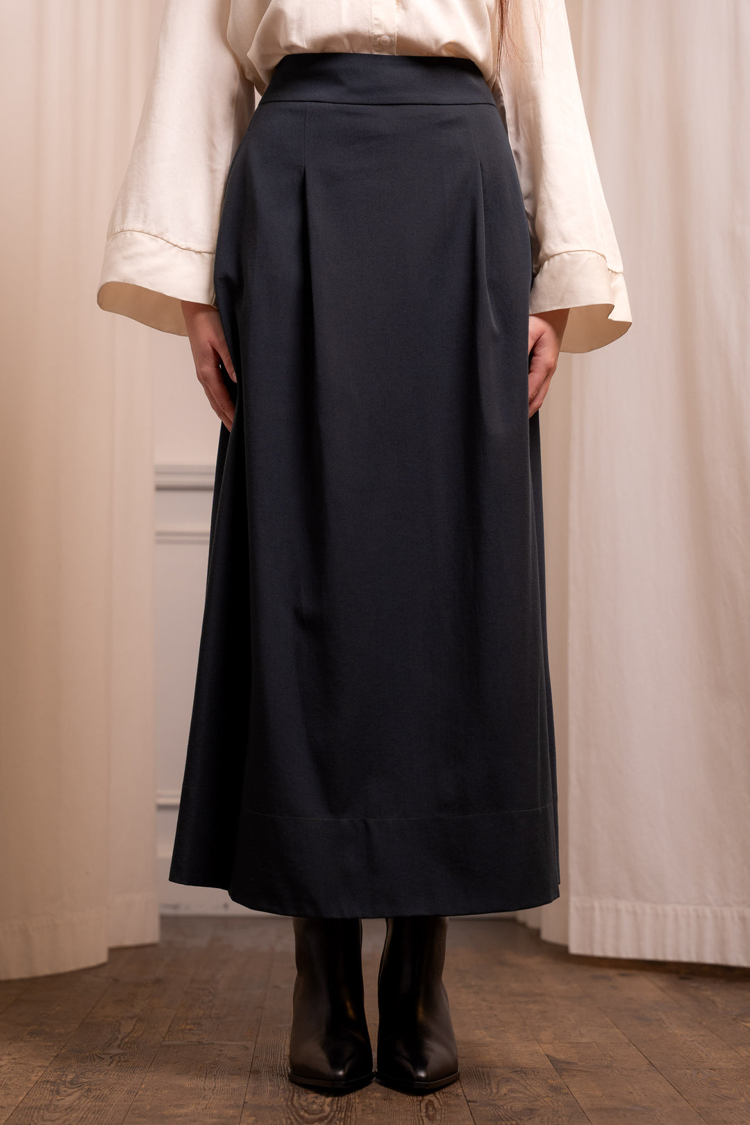 Gray Denim Midi Skirt