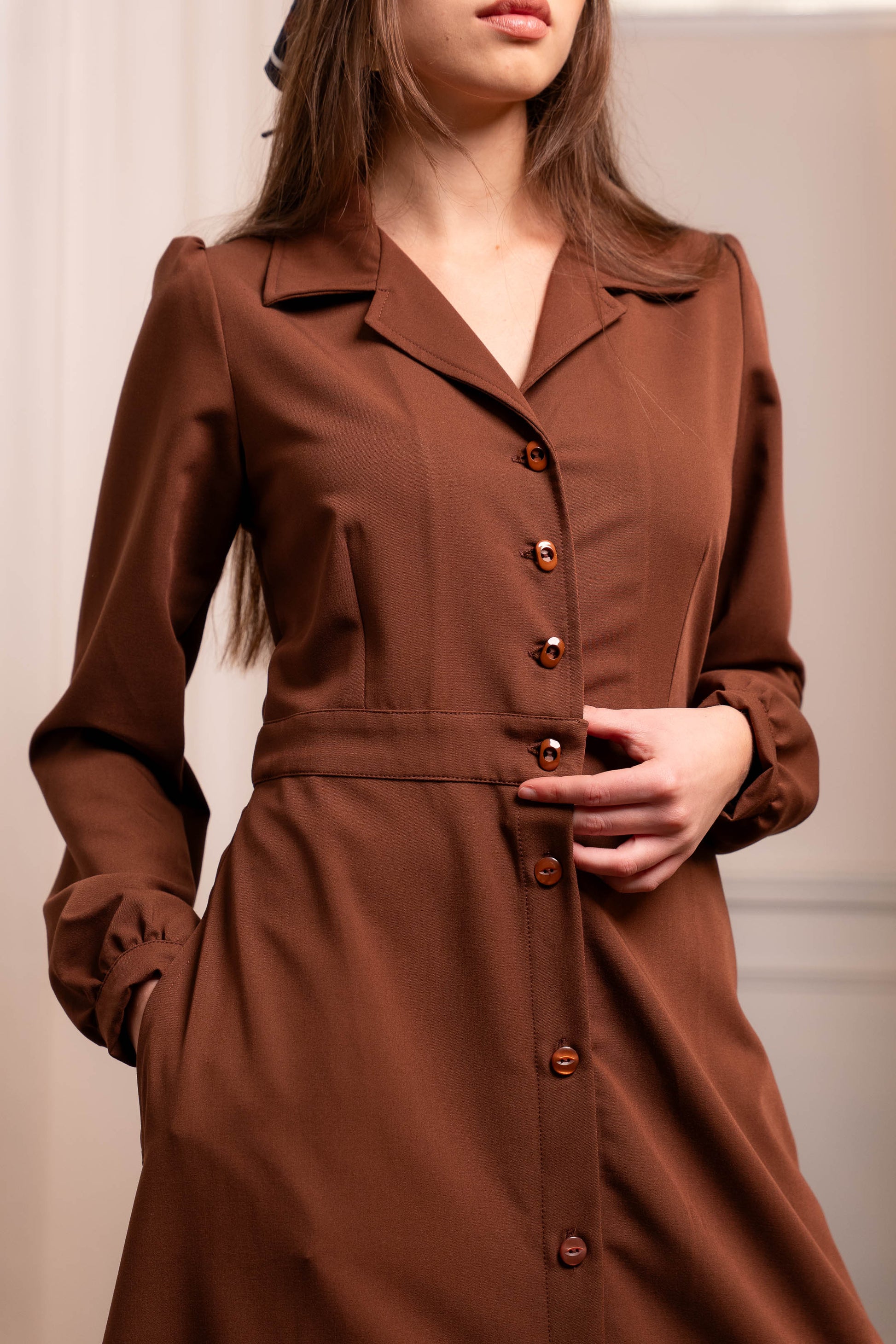 Chemisier Caramello Lana - Abito Camicia Sartoriale Made in Italy