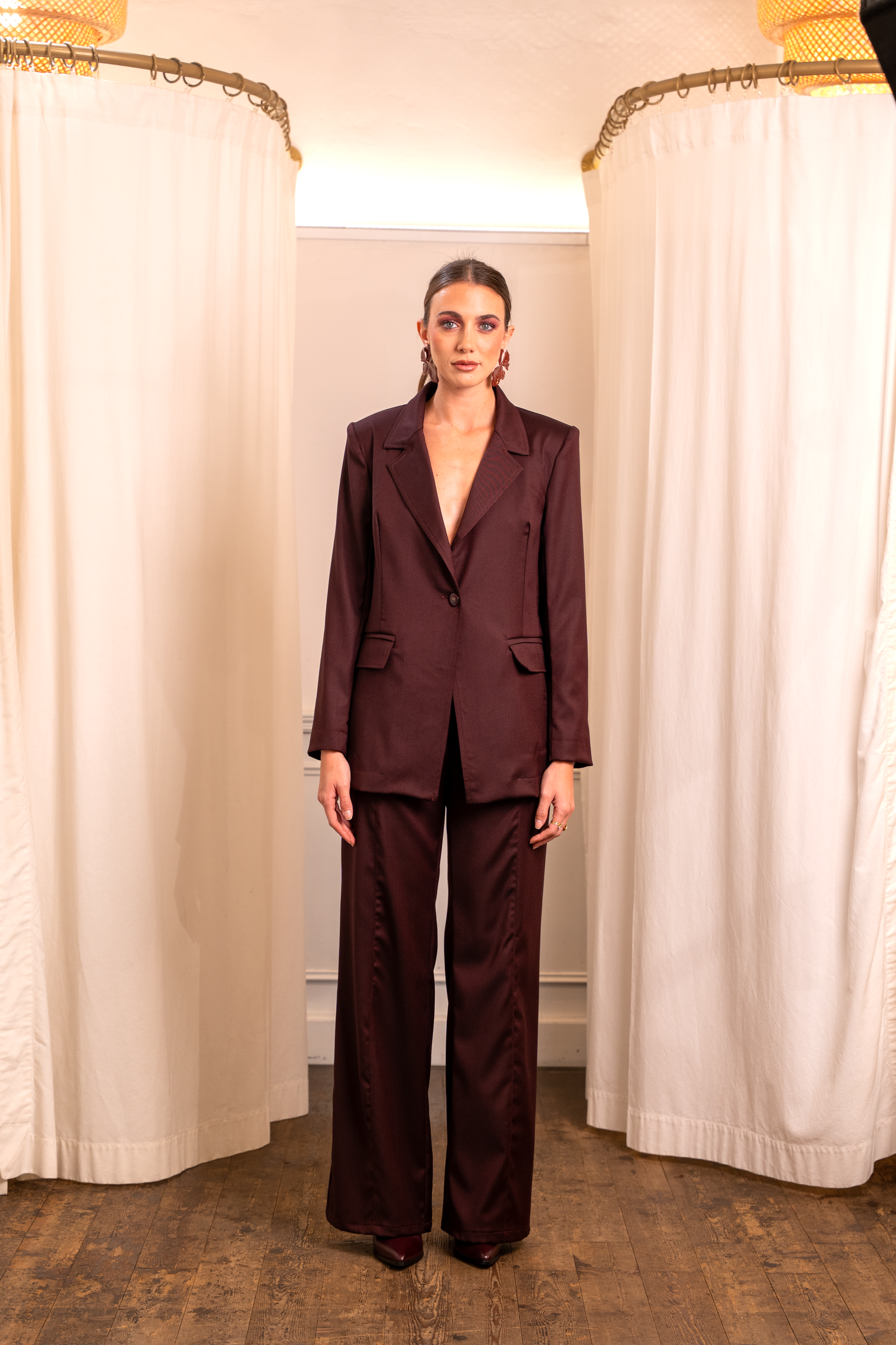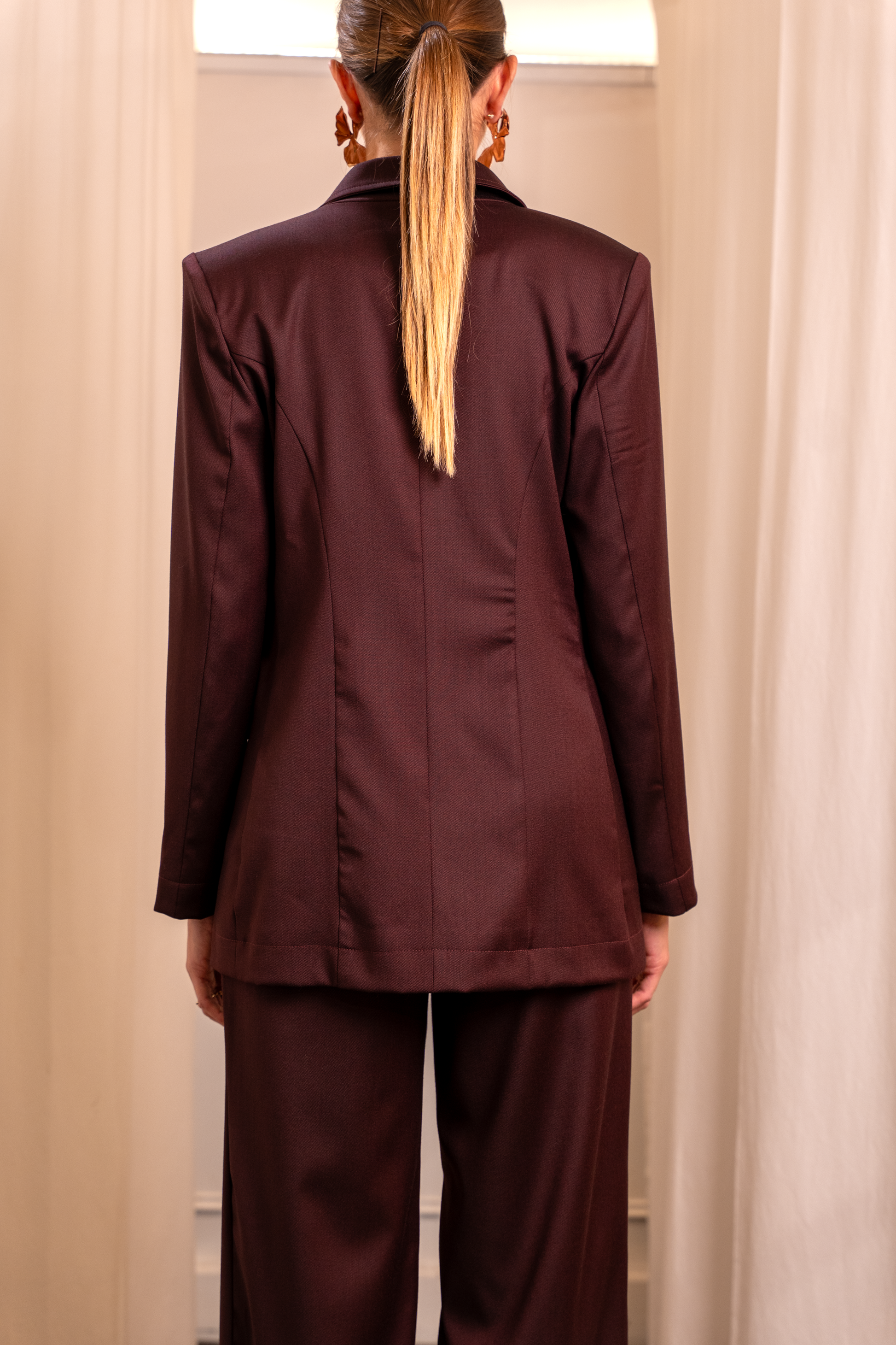 Giacca Laura Prugna Lana Seta - Spalline Bottone Personalizzabile Made in Italy