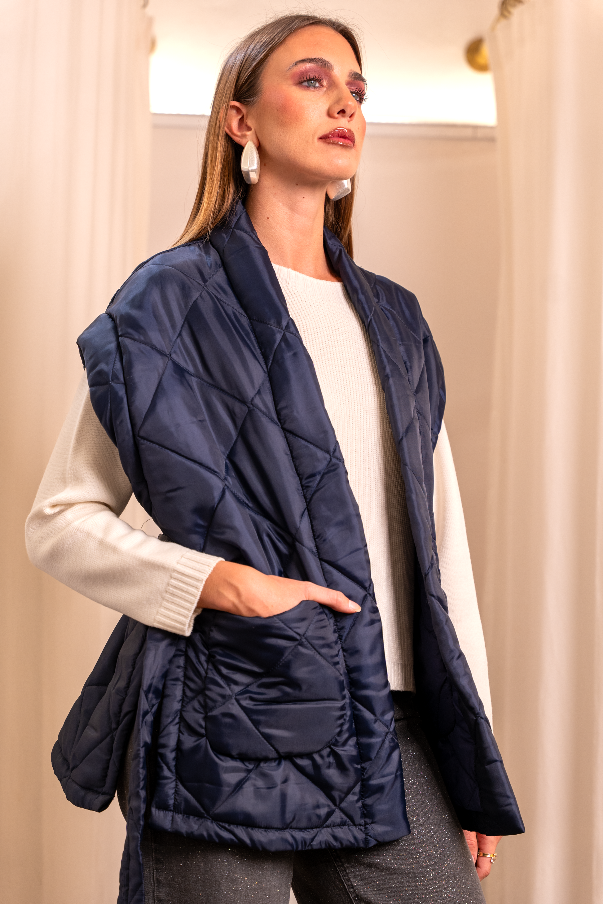 Gilet Piumino Blu Taglio Kimono - Tasche e Spacchi Made in Italy